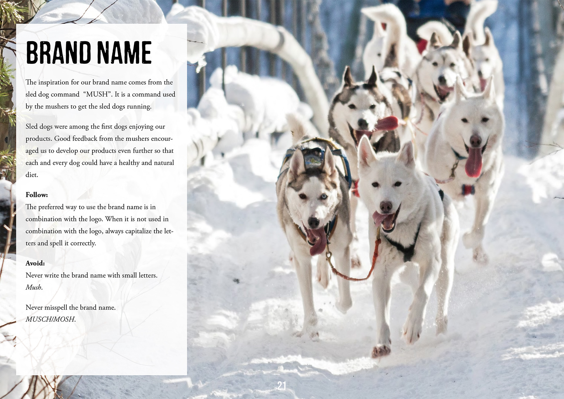 I did the complete rebranding of the Finnish 100% natural raw dog and cat food brand MUSH. The rebranding started with creating two different logos—one for dog food and other for cat food. The project included creating a wholesome brand image: logo(s), colors, typography, photography & illustration style, package design, website, in-store materials, product pictures, posters, brochures, advertisement and social media materials.