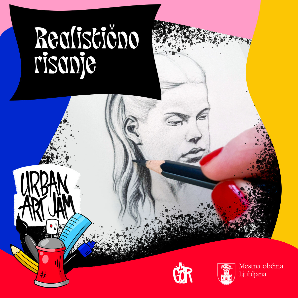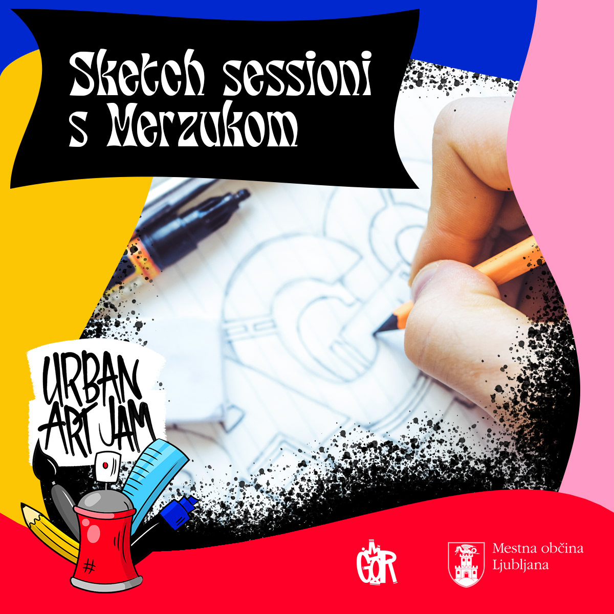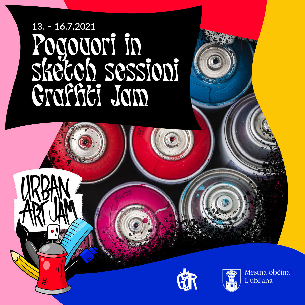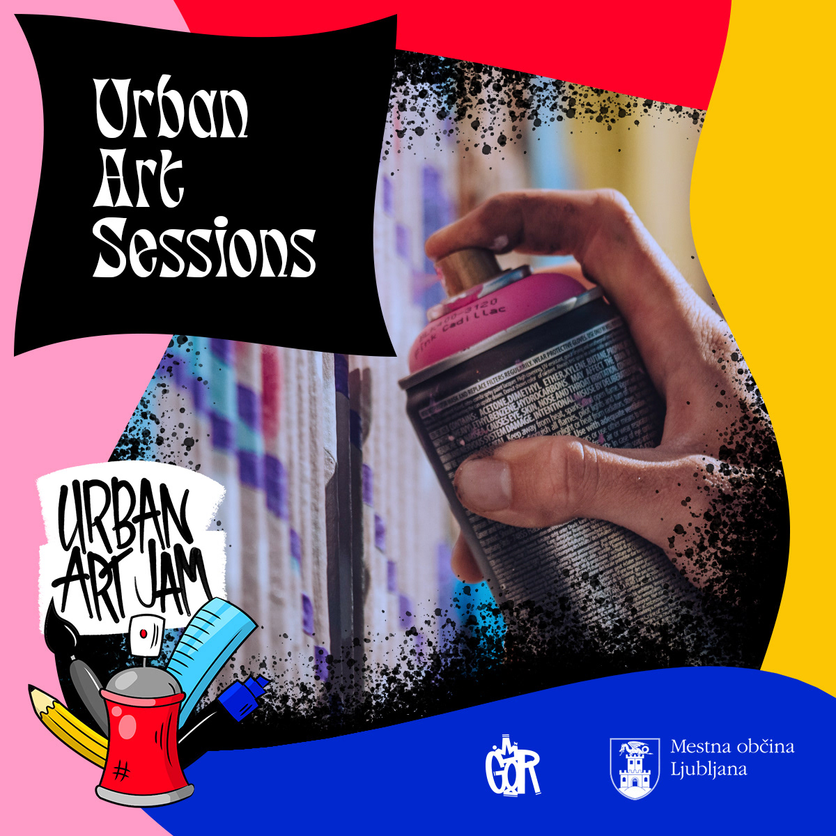 Digitally illustrated logo and lettering and all the social media promotion materials for Urban Art Jam—a series of art workshops and a graffiti jam for youth and teenagers with a range of different mentors in Ljubljana, Slovenia.